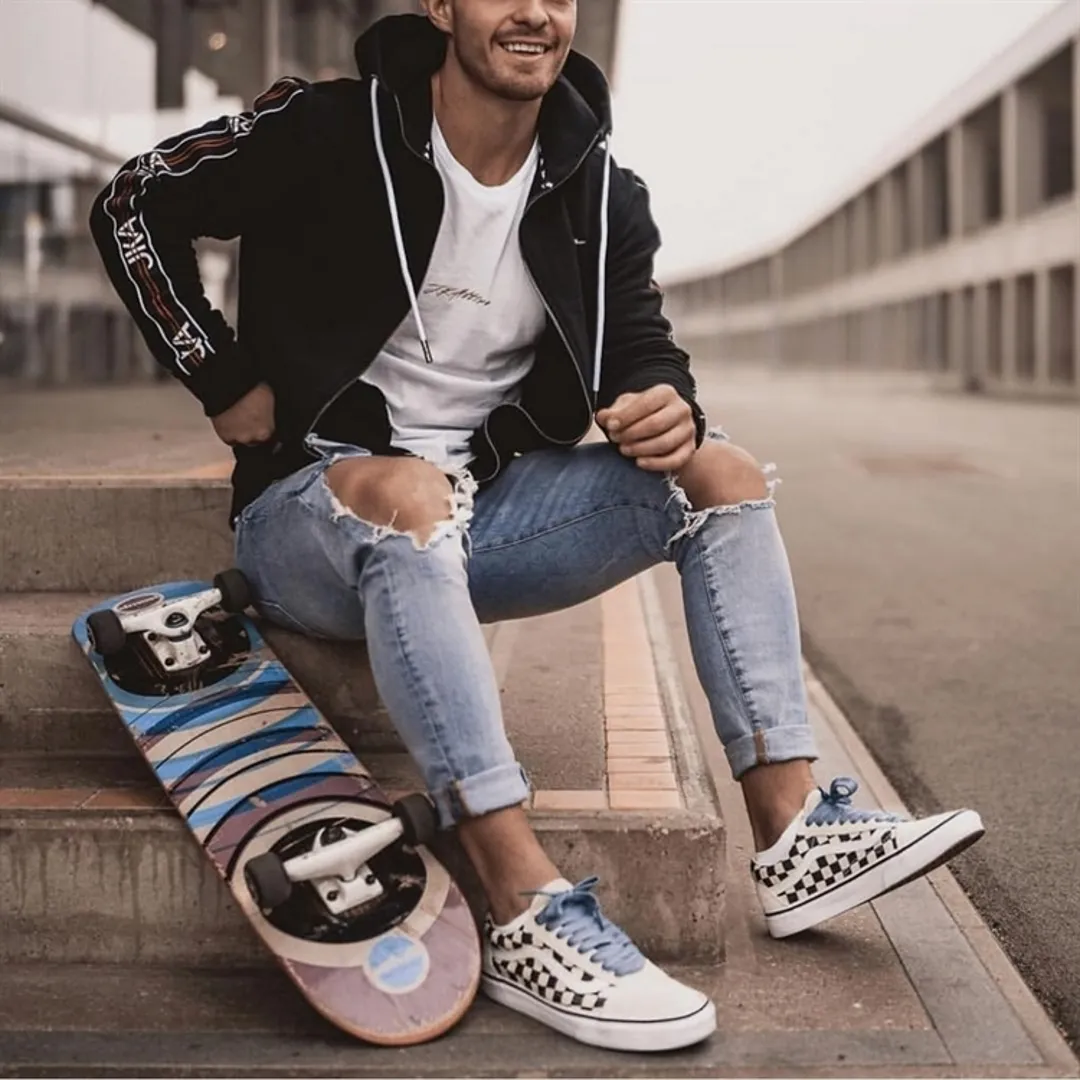 Повседневные джинсы носят в любое время года, и они очень распространены во всем мире. Привычные всем, классические формальные и дизайнерские модели, несомненно, найдутся в гардеробе каждого мужчины. Но, есть еще один вид джинсов, который сегодня также хорошо известен среди молодежи и поколения постарше – это рваные джинсы.