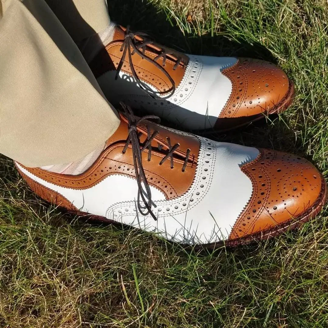Это Вингтипы контрастного цвета – один оттенок кожи для мыска, другой – для остальной части Брогов. Двухцветные варианты взяты из колониальной эпохи, они были популярны в 1920-х годах, хотя даже тогда их считали вычурными. В наши дни они отвлекают внимание от всего остального, что на вас надето, поэтому их следует носить с осторожностью.