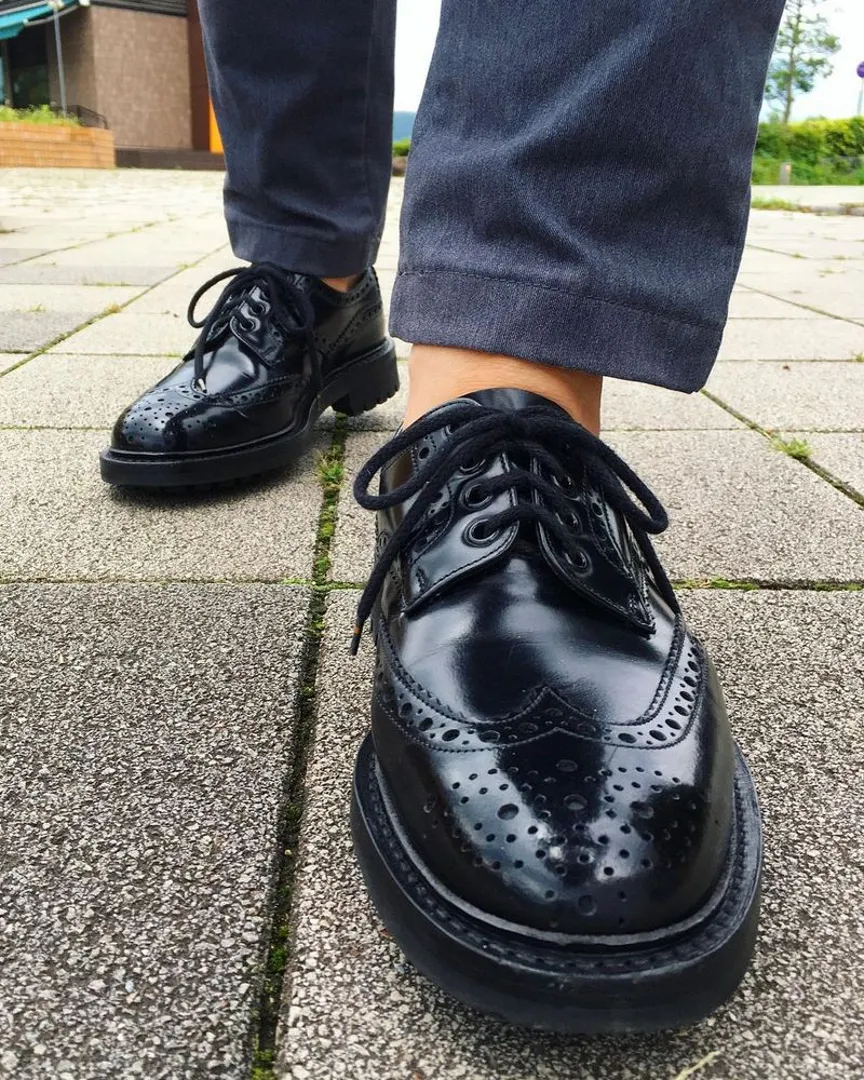 Мы не считаем, что есть какой-то определенный тип мужчин, которым подходят Вингтипы. В прошлые десятилетия они хорошо смотрелись с оксфордскими сумками, а сегодня одинаково хорошо смотрятся с узкими джинсами.