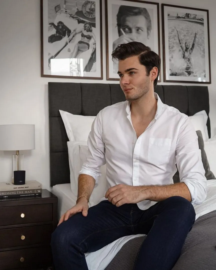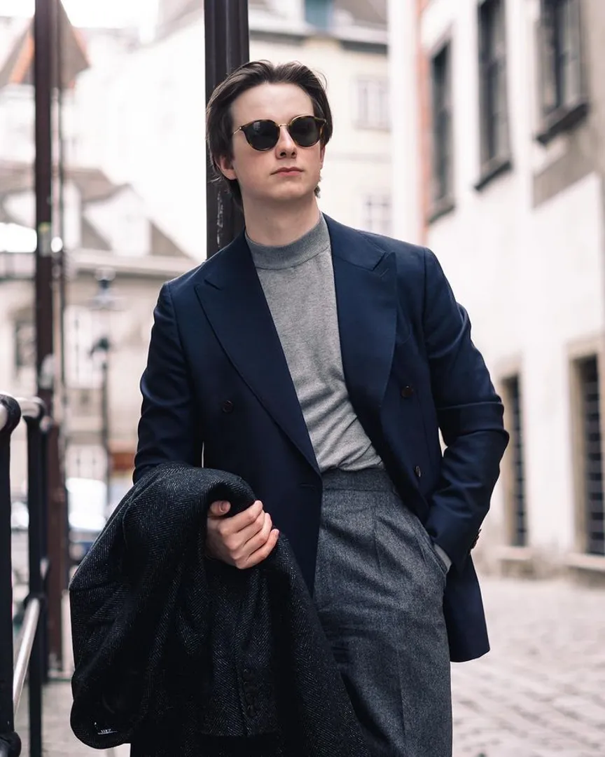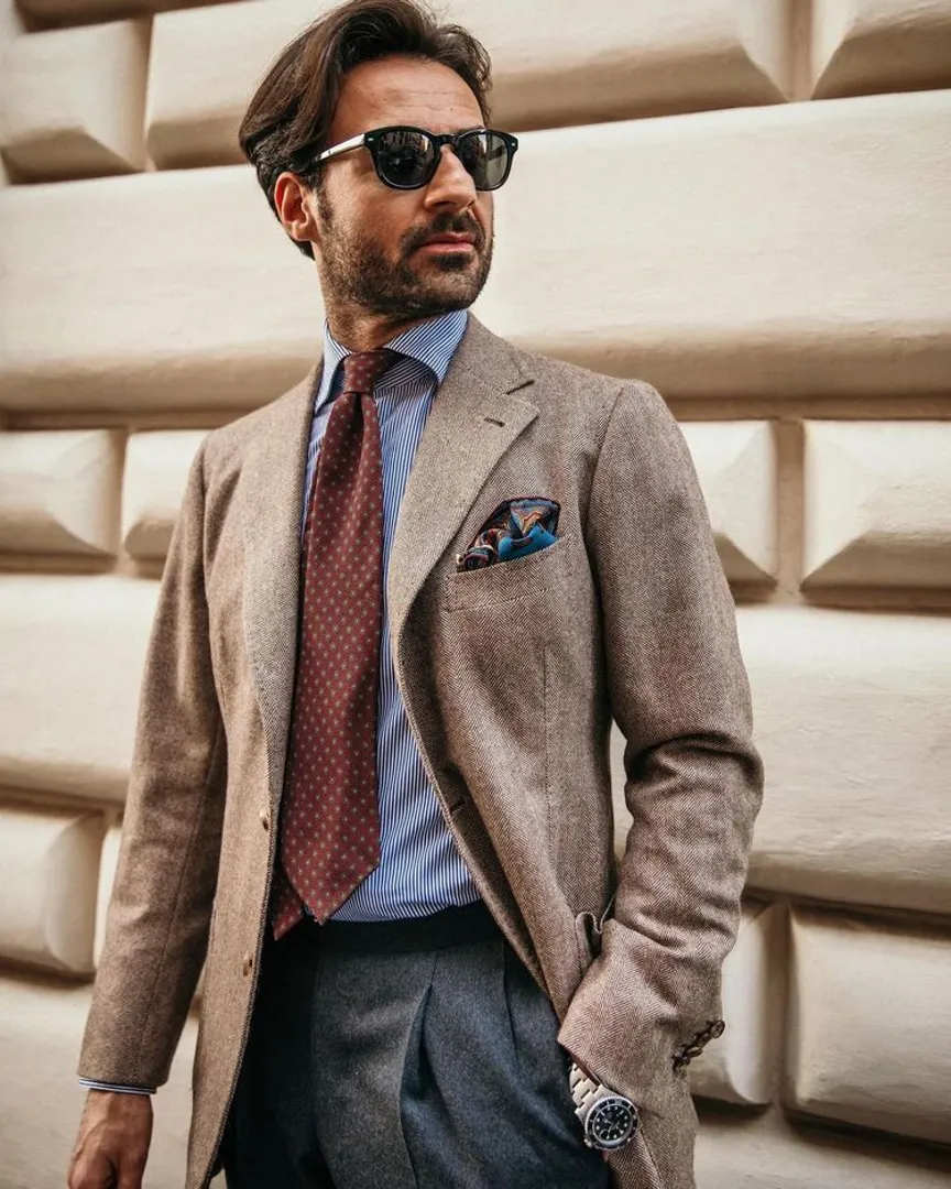 Во-первых, он невероятно универсален. Вы можете практически превратить его в костюм с помощью подходящих аксессуаров. Его также можно надеть поверх простой приталенной футболки и джинсов. Есть одно правило, характерное для консервативной моды, о котором следует помнить: последнюю пуговицу всегда следует оставлять расстегнутой, независимо от наряда или случая.