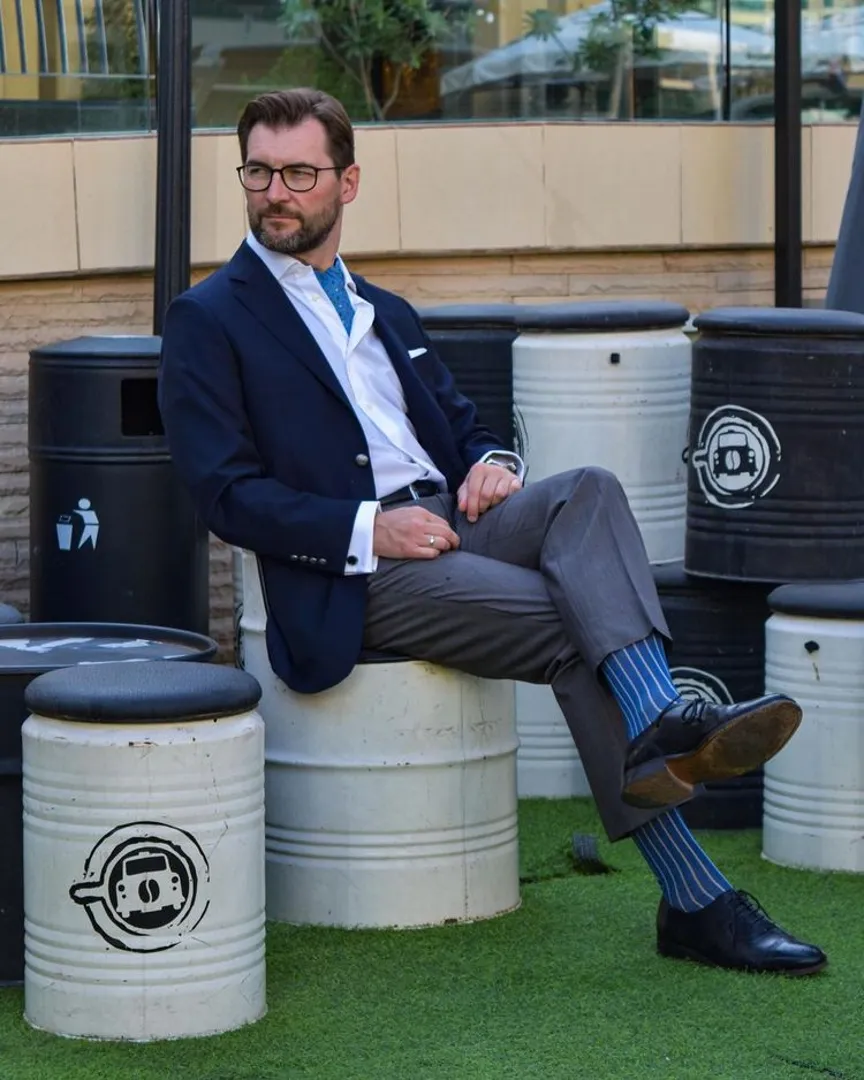 Все мы слышали поговорку: «Не сломано — не чини». Что ж, она применима и здесь. Классический темно-синий блейзер идеален как есть, поэтому не нужно придумывать что-то еще.