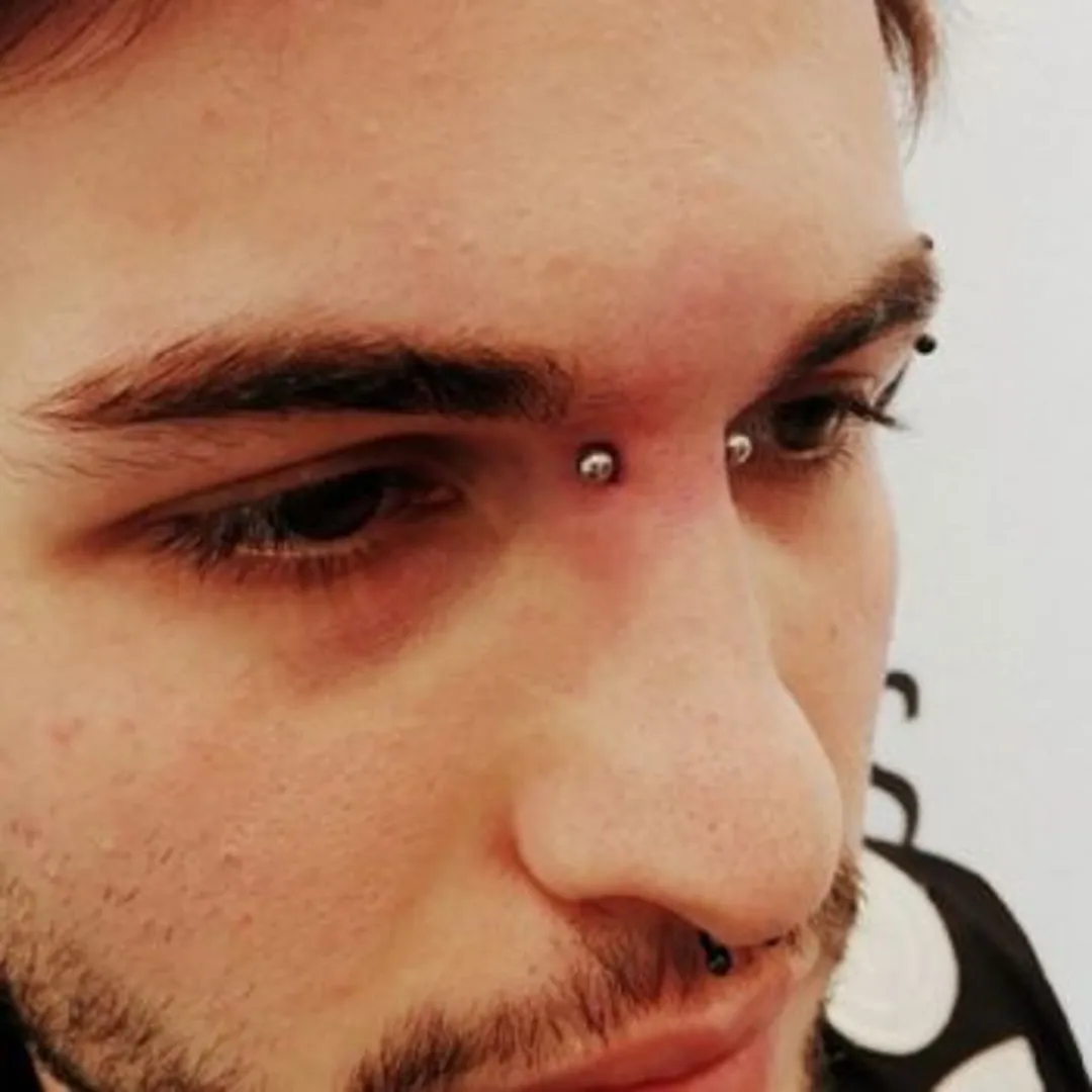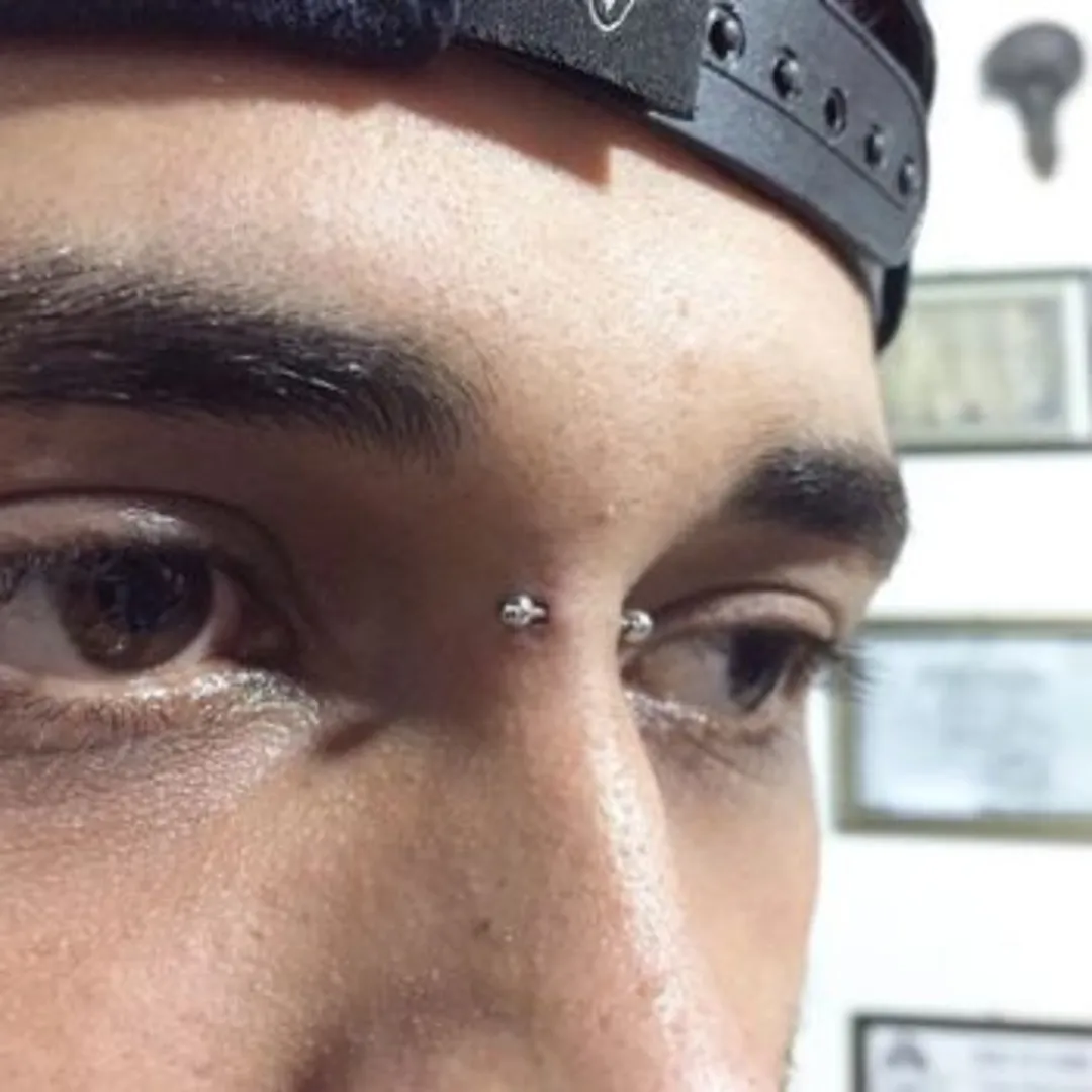 Данный вид пирсинга брови у мужчин, который называют «бридж», делается в мягких тканях переносицы. Место и расположение прокола выбирается любое: горизонтальный или вертикальный. Зависит от анатомических особенностей строения переносицы. Пирсинг переносицы подходят мужчинам с острым носом с горбинкой. Обязательное условие выбора пирсинга переносицы – это наличие толстой кожи в переносице и запаса мягких тканей.