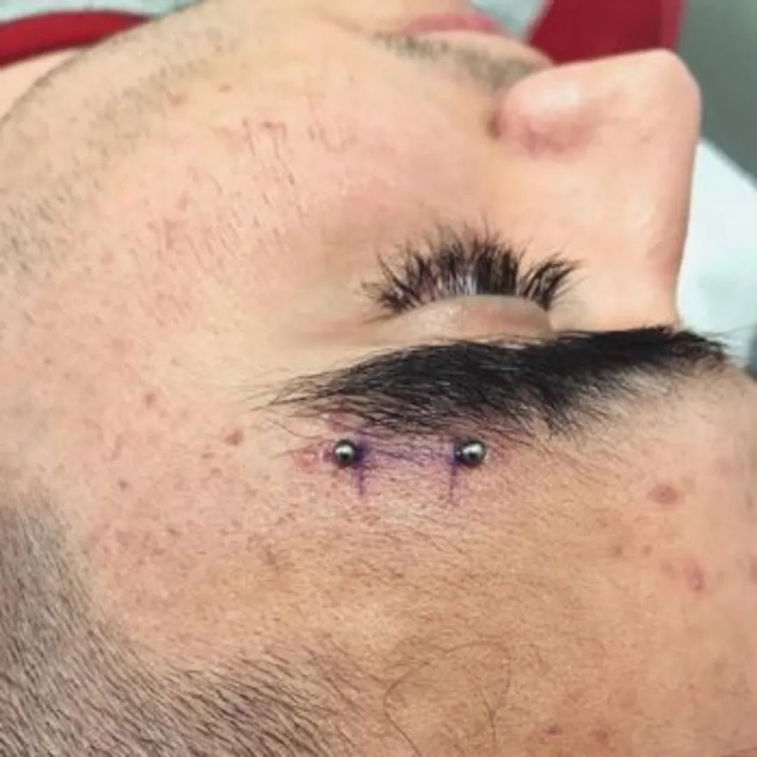Горизонтальный прокол брови можно выполнить в любом месте, главное, чтобы там хватало ткани: выше брови, немного под бровью или на самой брови. Этот тип пирсинга сложный, так как угол наклона рассчитывается непосредственно мастером, а не по желанию клиента. Особенность в том, что при горизонтальном проколе местонахождение серьги будет находиться к кости максимально близко. Поэтому нужно тщательно выбрать угол, место и металл сережки.
