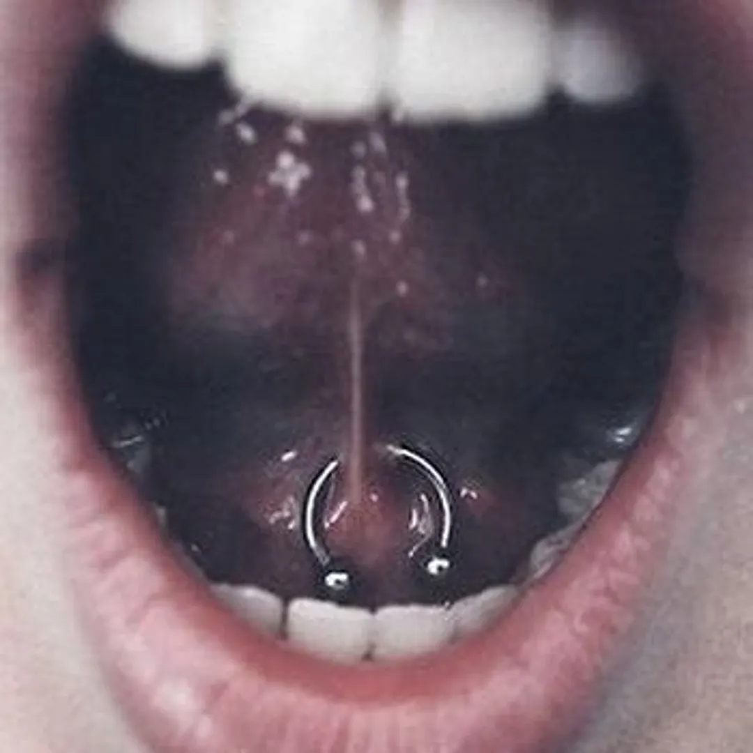 Так называется прокол уздечки. Довольно болезненно и может навредить зубам, так что, стоит выбирать украшения осторожно. Не все могут сделать такой пирсинг –это зависит от анатомических особенностей. Кроме того, иногда бывает отторжение.
