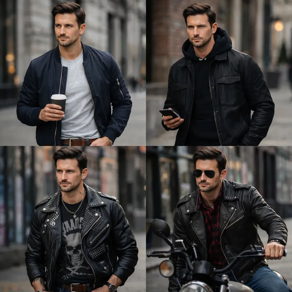 - Рок-стиль: Кожаные куртки-косухи, рваные джинсы, футболки с принтами групп, грубые ботинки (Chelsea, Grunge, Punk).