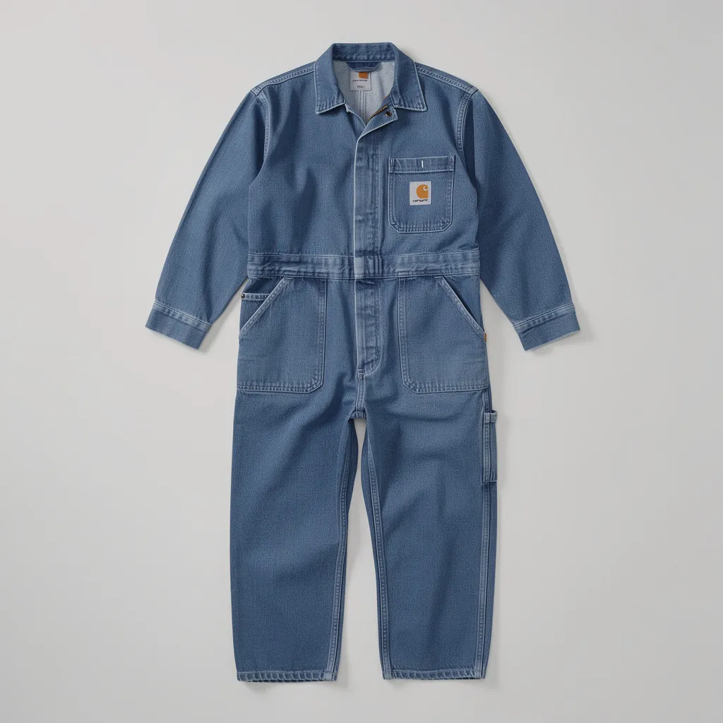 - Икона: Классические синие комбинезоны от Carhartt или OshKosh B'gosh.