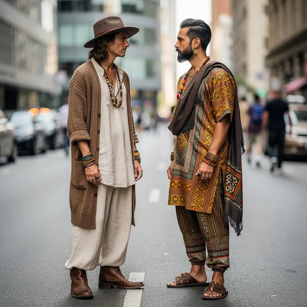 Этнический и богемный стиль — это для мужчины, который ищет в одежде не статус, а значение; не тренд, а историю; не унификацию, а диалог с миром. Это стиль творцов, путешественников, философов и тех, кто устал от стерильности современного мира. Он напоминает, что красота — в несовершенстве ручной работы, что мудрость — в древних символах, а свобода — в возможности носить то, что рассказывает твою уникальную историю. Это не просто способ одеваться — это способ жить более осознанно, красочно и свободно.