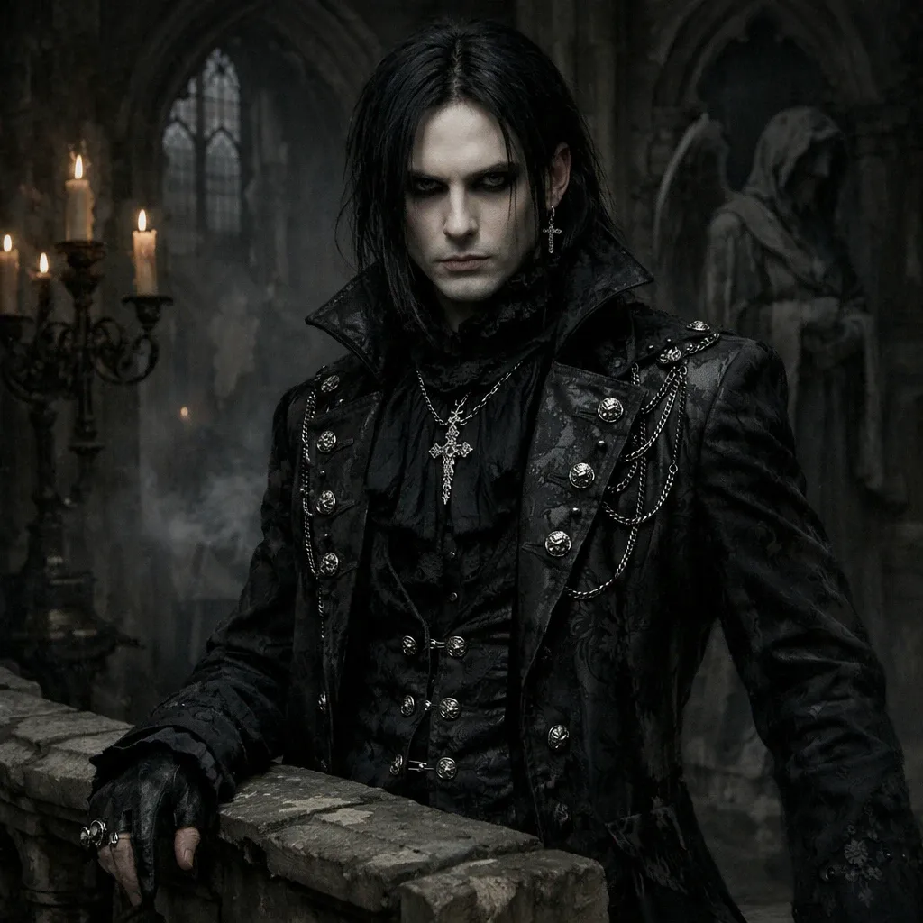 - Романтик-гот (Romantic Goth): Акцент на исторические элементы: корсеты, бархат, кружевные рубашки, пальто с пелеринами. Сильный уклон в викторианскую и эдвардианскую эпоху.
