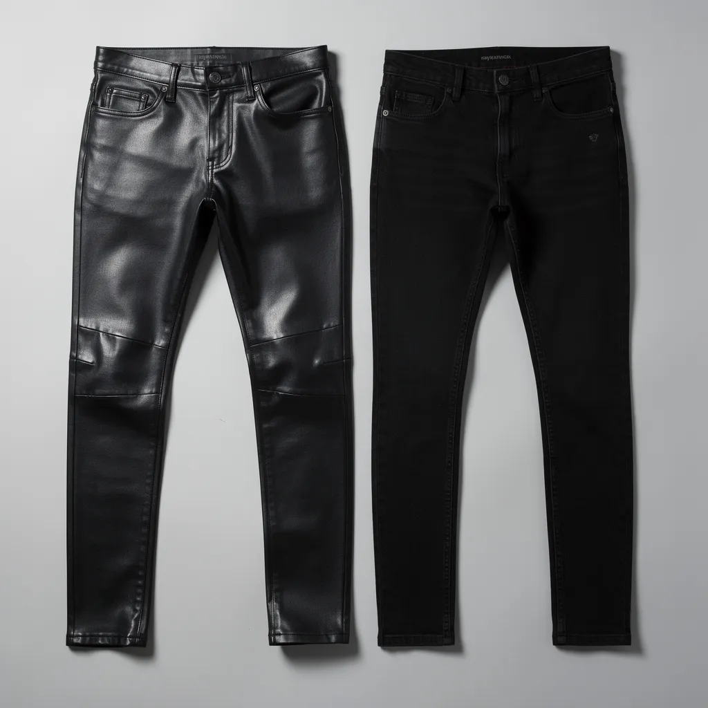 - Облегающие чёрные брюки/джинсы (Skinny Black Trousers/Jeans): Идеально ровные, часто из кожи, латекса или плотного хлопка. Силуэт стройный и вытянутый.