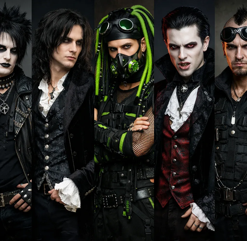- Андрогинность и гендерная текучесть. Готика исторически стирала чёткие гендерные границы. Мужчины носят юбки-килты, подводят глаза, используют кружева и корсеты. Красота здесь внеполая, она заключается в бледности, худобе, отрешённости взгляда.