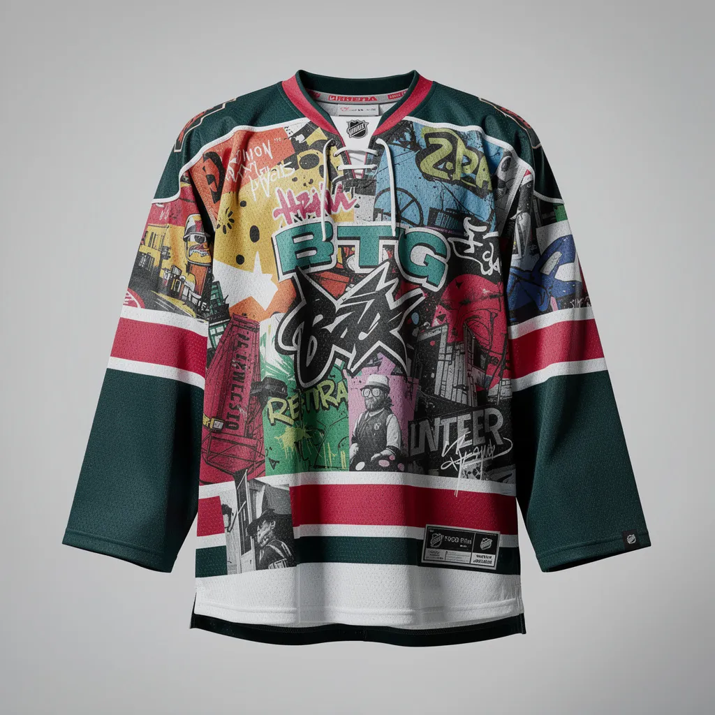- Хоккейная майка (Hockey Jersey): Яркая, с номером и логотипом команды.