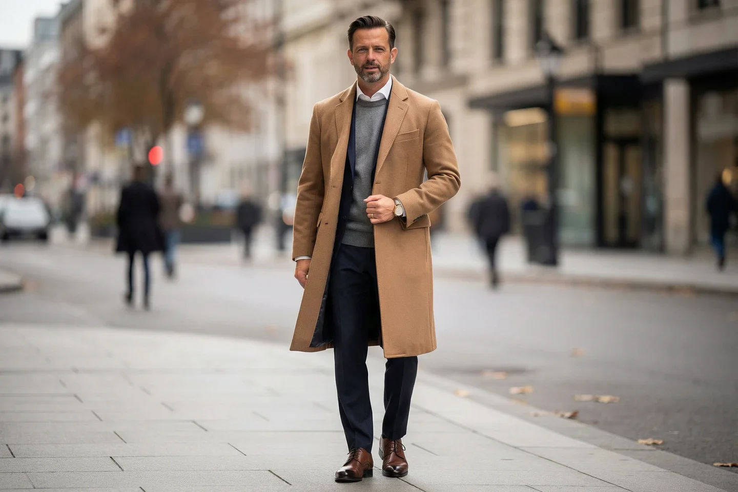 - Слоёность (Layering). Рубашка + свитер + пиджак + пальто. Каждый слой функционален и визуально обогащает образ.