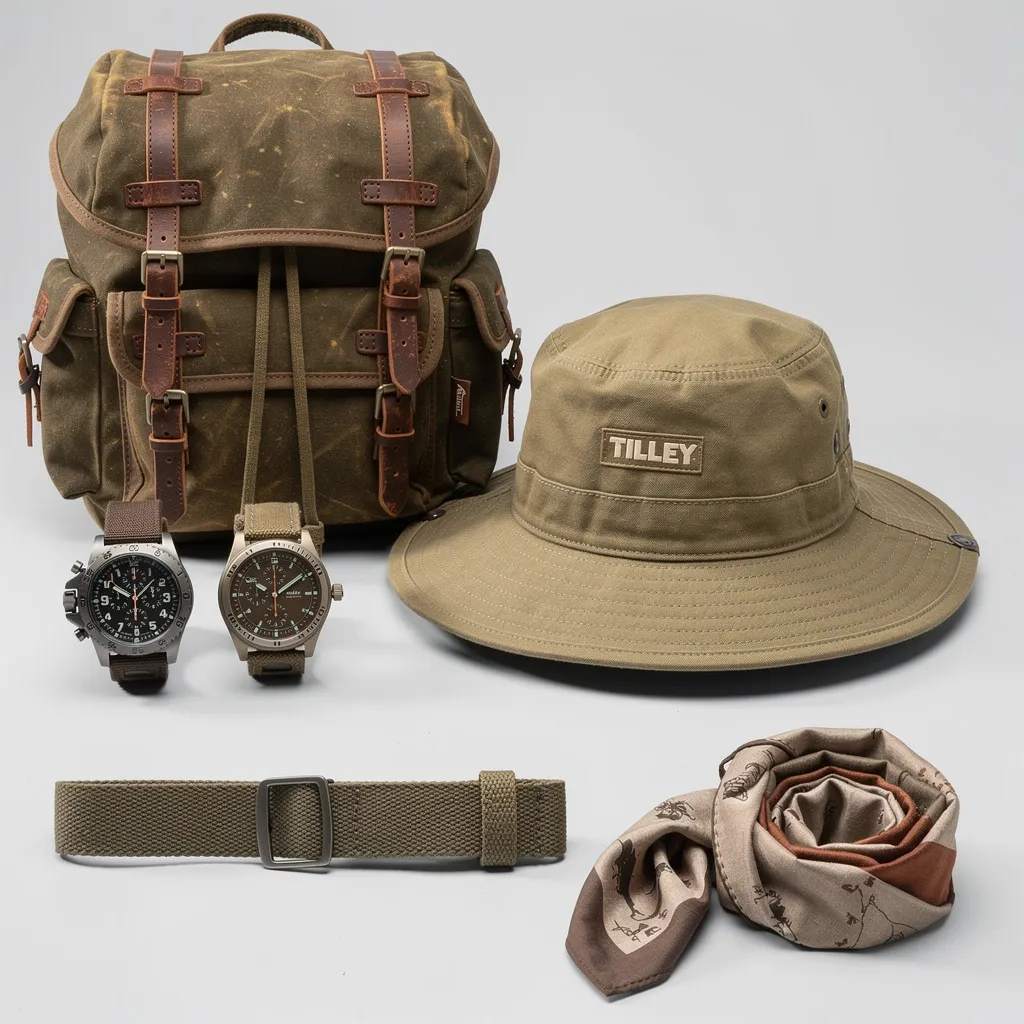 - Шляпа с полями (Safari Hat): Из фетра, соломы или хлопка с защитой от солнца. Легендарная модель «Tilley Hat».