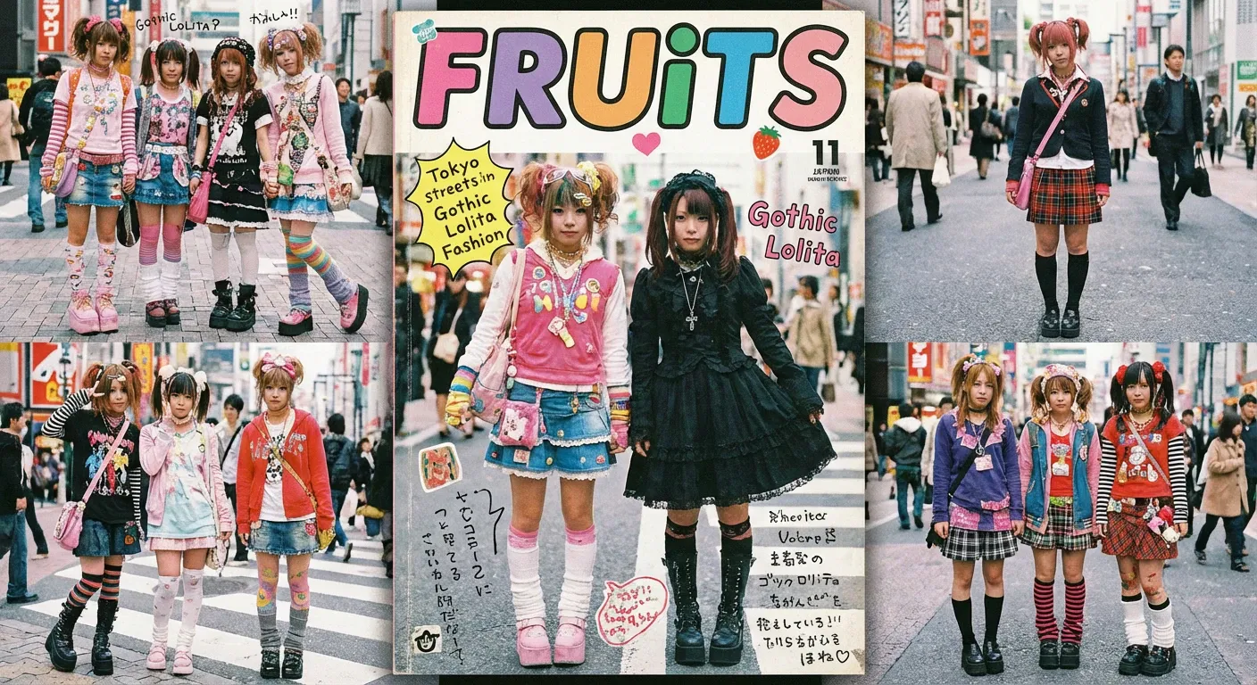 - 1990-е: Бум субкультур. Расцвет Visual Kei (театральный глэм-рок), Готик и Лолита, Фрутс (Fruits) — стиля, основанного на гиперболизированной «милости» и ярких цветах. Уличный фотограф Сёити Аоки начинает журнал FRUiTS, документируя эту стихию и делая её известной миру.
