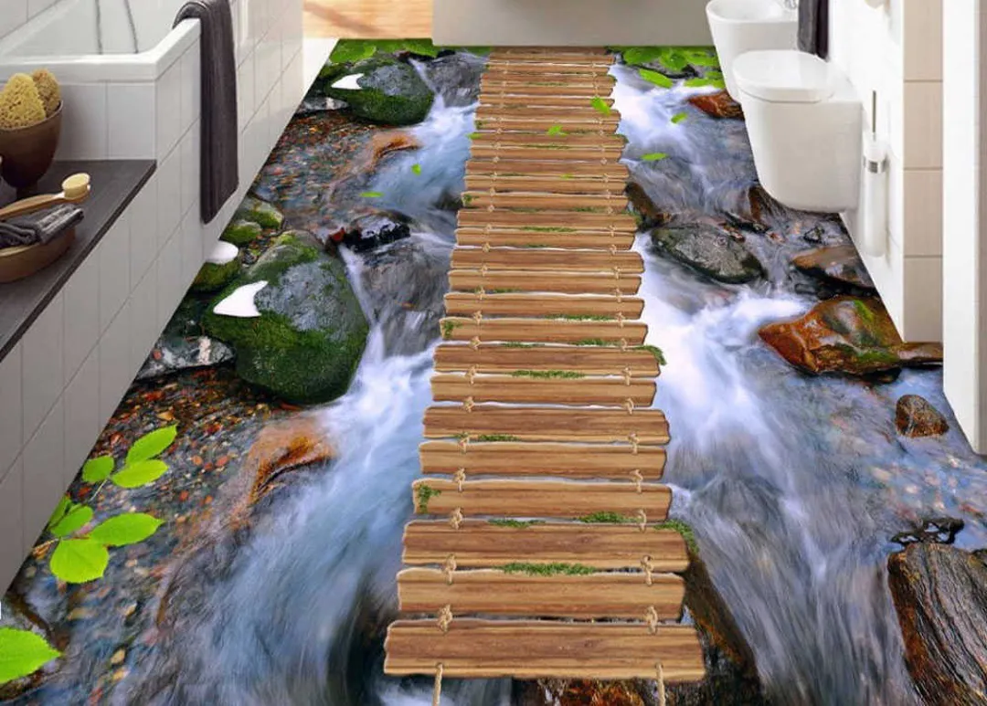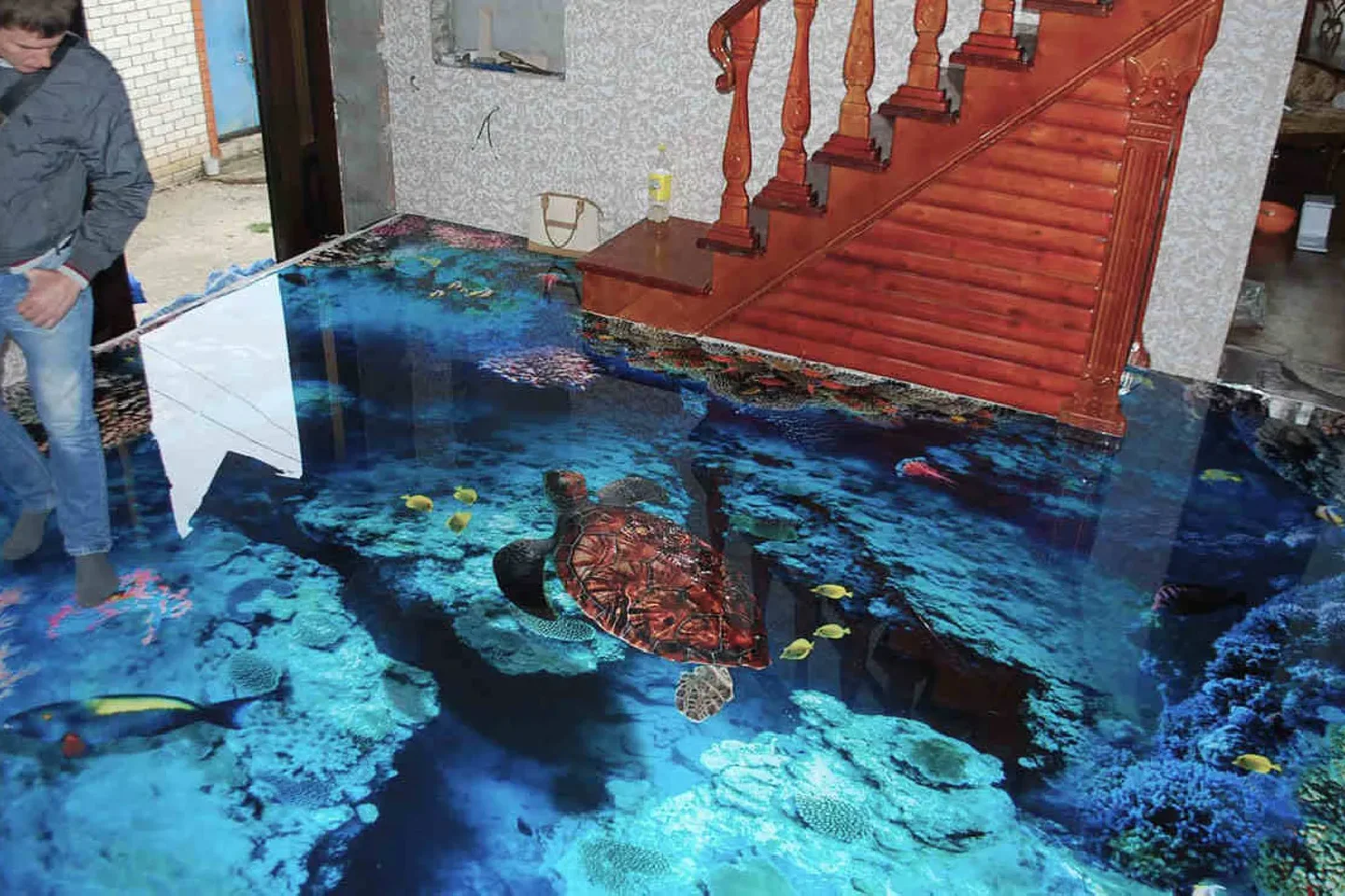 Обустройство наливных 3D полов в ванной комнате позволит сделать это помещение более оригинальным. При этом такое напольное покрытие стойко переносит механические воздействия, не боится влаги и моющих средств.