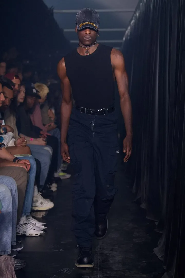 И наконец, Мартин Роуз с внесезонным шоу, прошедшим в Воксхолле, исторически рабочем районе Южного Лондона с очень длинным послужным списком как оплота ночной жизни людей нетрадиционной ориентации. На самом деле, коллекция вдохновлена эстетикой данной территории, как своеобразная ассоциация общего пространства клуба с безопасным местом, где рабочая одежда становится эротической броней, между молниями и полиэстером, кепками и ботинками.