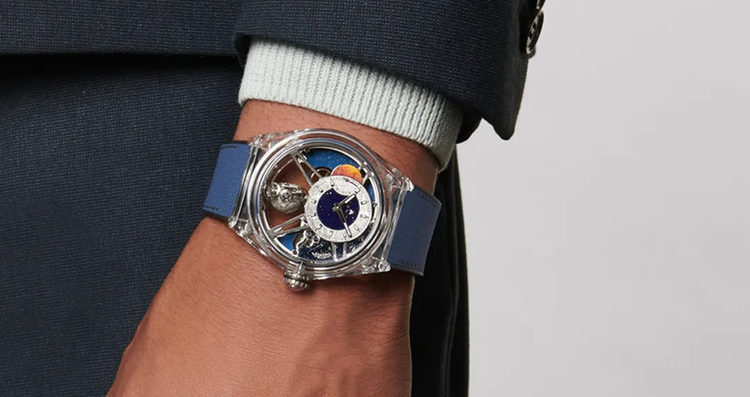 Для придания космической тематики малая секундная стрелка расположена на фоне Марса, а задняя часть гиромодуля имеет поверхность, напоминающую кратеры Луны. Часы, о которых идет речь, выпущены ограниченной серией: их стоимость составляет около 155 тысяч евро, а экземпляров всего десять. И их приобретение позволят покупателям получить бесплатный параболический полёт.