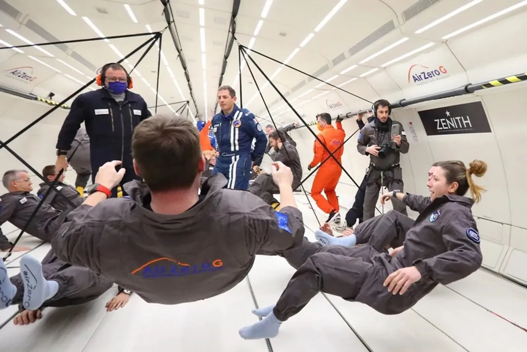 В Европе это можно сделать в Швейцарии или всего в нескольких километрах от Бордо, где бывший астронавт основал компанию AirZeroG от Novespace, связанную с французским космическим агентством Cnes (Centre National d’Études Spatiales), сотрудничающую с Европейским космическим агентством (ESA) в рамках двадцати пяти параболических полётов в год. Двадцать из них предназначены для исследований, то есть для учёных, студентов, пишущих диссертации, и учёных разного рода, а пять – для чистого развлечения и выяснения, каково это – находиться в невесомости.