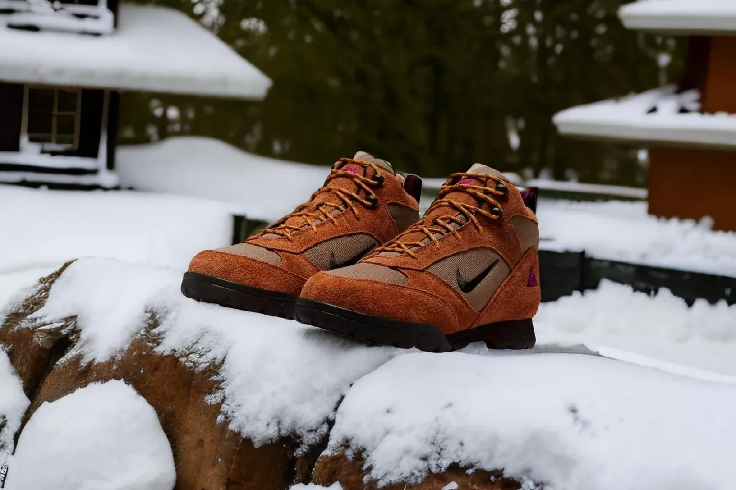 Ретро, водонепроницаемые альпинистские ботинки покрыты замшей из стриженой кожи на сетчатой основе, а каблук выполнен в стиле 90-х годов. Снизу подошва напоминает сабо и имеет ластовицу, чтобы вы могли держаться на ногах на тропах или на скользких городских улицах. Два цветовых варианта, знаменующих возвращение ACG Torre Mid, имеют немного разные оттенки коричневого цвета для замшевых накладок, хотя основные различия заключаются в подкладке и брендинге.