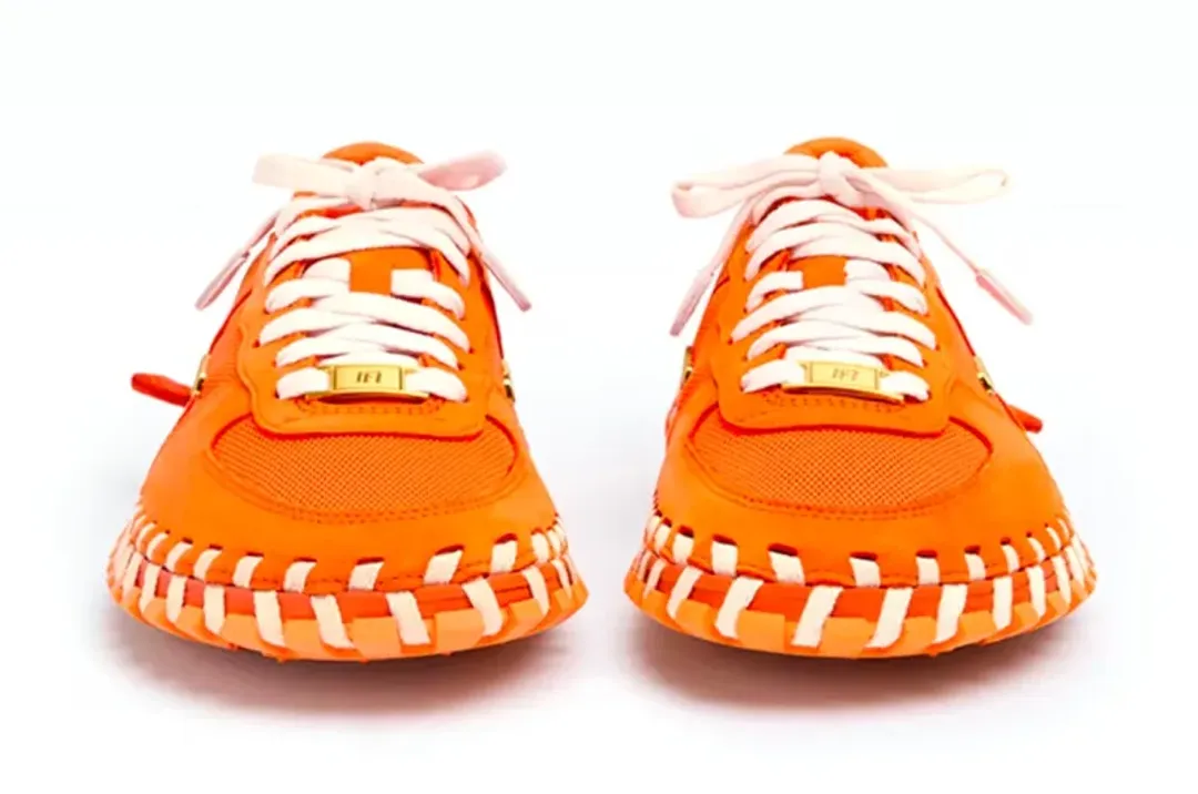 Последняя модель от Jacquemus, представленная в оранжевой расцветке, призвана оживить ваш осенний модельный ряд. В отличие от классических Air Force 1, которые обычно изготавливаются полностью из кожи, ремикс парижского бренда выполнен на воздухопроницаемой сетчатой основе, а вместо кожи покрыт замшевыми панелями. Золотистый свуш Metallic Gold расположен на боковой и медиальной панелях, а другие фирменные знаки выбиты на язычке и пятке. В то время как традиционные AF1 оснащены резиновым воздушным блоком, новые кроссовки сшиты вручную с использованием сложной техники «плетеный шов». Эта техника вдохновлена традиционными ремеслами и напоминает о легендарных ACG Terra 2007 года — одной из любимых моделей Симона Порте Жакмю.