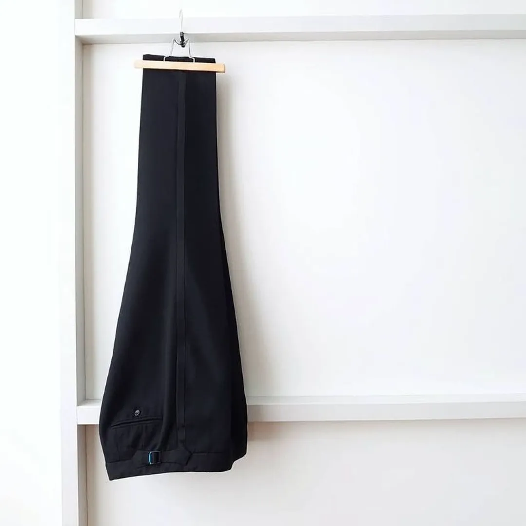 Как и фрак, вечерние брюки, которые носят с белым галстуком, очень специфичны. Они имеют ребристую двойную полоску, в отличие от одинарной на брюках с черным галстуком. У них также имеется задняя часть в виде рыбьего хвоста с пуговицами-скобами (белые муаровые скобы – такие носил Дэниел Крейг в роли Джеймса Бонда в фильме «Казино Рояль» – традиционны, но вы можете обойтись и без них, если уверены, что брюки будут держаться) и боковые регулировки.