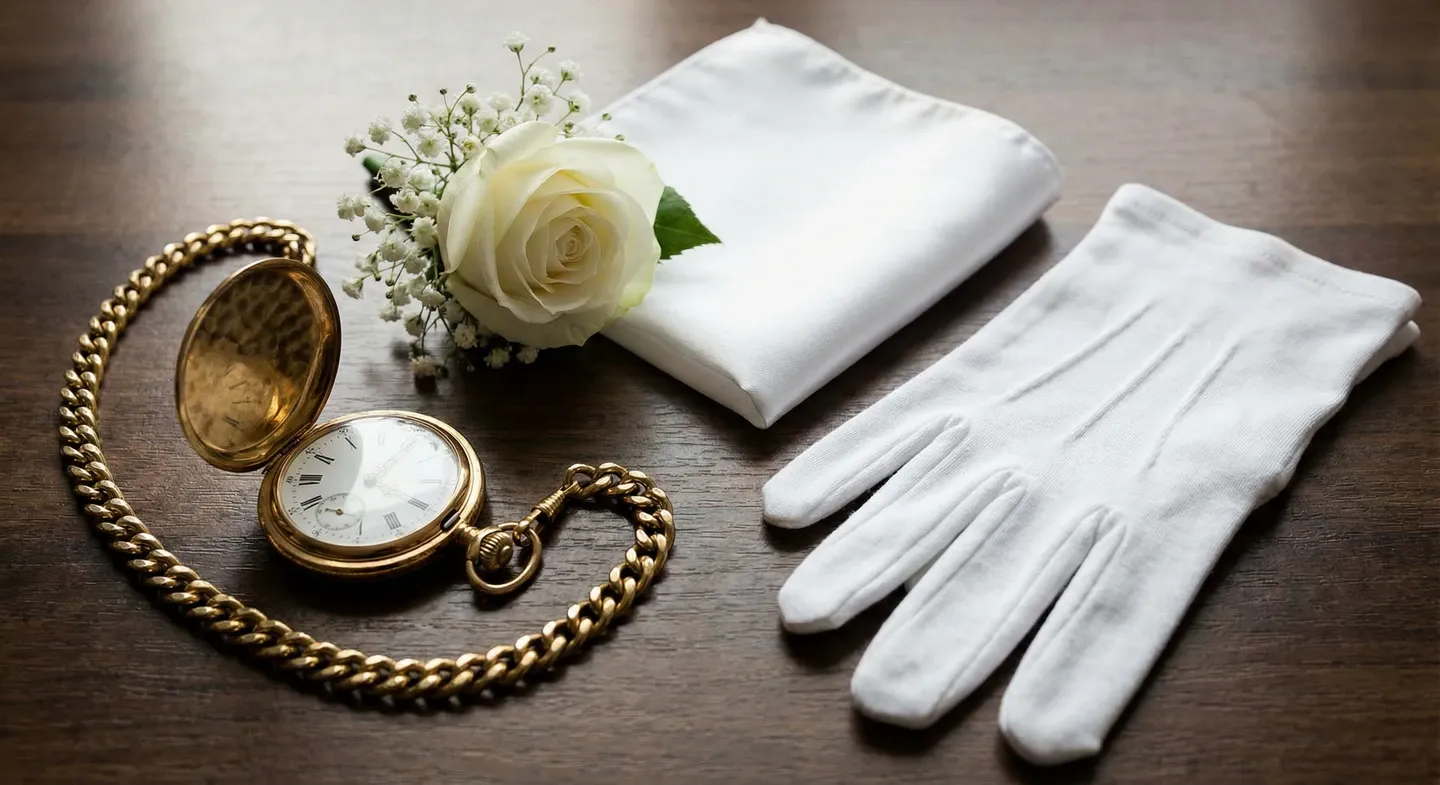 - Аксессуары (часы, платок, бутоньерка — по желанию, но без излишеств)