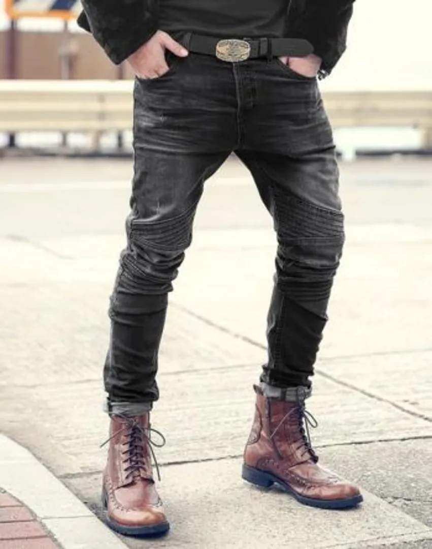 В мире мужских джинсов есть несколько основных правил, которые мы должны соблюдать. Удостоверьтесь, что ваши джинсы подходят вам по размеру бедра. Для начала выбирайте в привычных естественных или нейтральных цветах (например, черные, серые, голубые) и старайтесь не злоупотреблять сложными стирками, чтобы не испортить внешний вид.