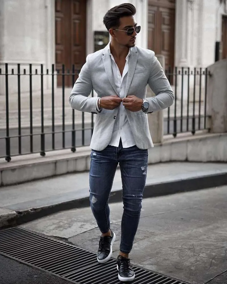 Если планируете культурно провести вечер, попробуйте сочетание темных джинсов с белой рубашкой, черного или серого жилета и клетчатого галстука. Застегните жилет на пуговицы или оставьте открытым, в зависимости от того, что вы предпочитаете, выберите простые и облегающие джинсы и подберите к ним подходящие туфли.
