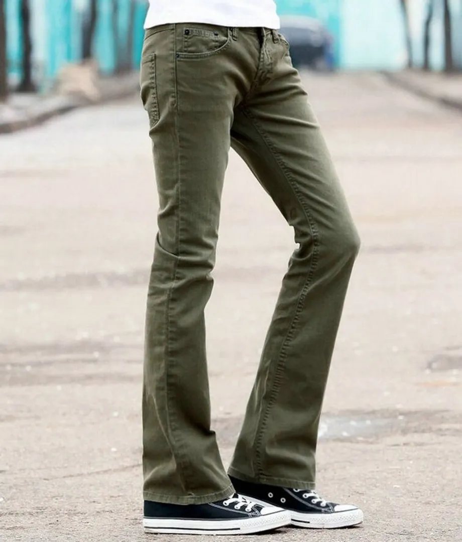 Являясь противоположностью зауженным моделям, расклешенные мужские джинсы имеют узкую посадку вдоль области бедер и расклешенный силуэт от колена. Почти близкие к колоколу, расклешенные джинсы – одна из тех пар, которые будет льстить вам невероятно сексуальным классическим образом и подойдет практически любому типу фигуры. Расклешенные джинсы – это еще более «расклешенная» форма широких джинсов, потому что их верхняя часть полностью контрастирует с эффектным размахом, идущим снизу.