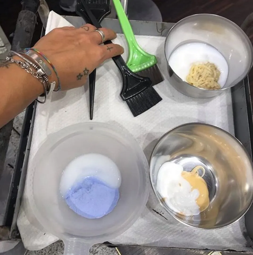 - Следуйте инструкциям на упаковке, смешайте нужное количество отбеливающего порошка и перекиси водорода. Безопаснее всего использовать вариант с 20%, чтобы снизить риск раздражения кожи;