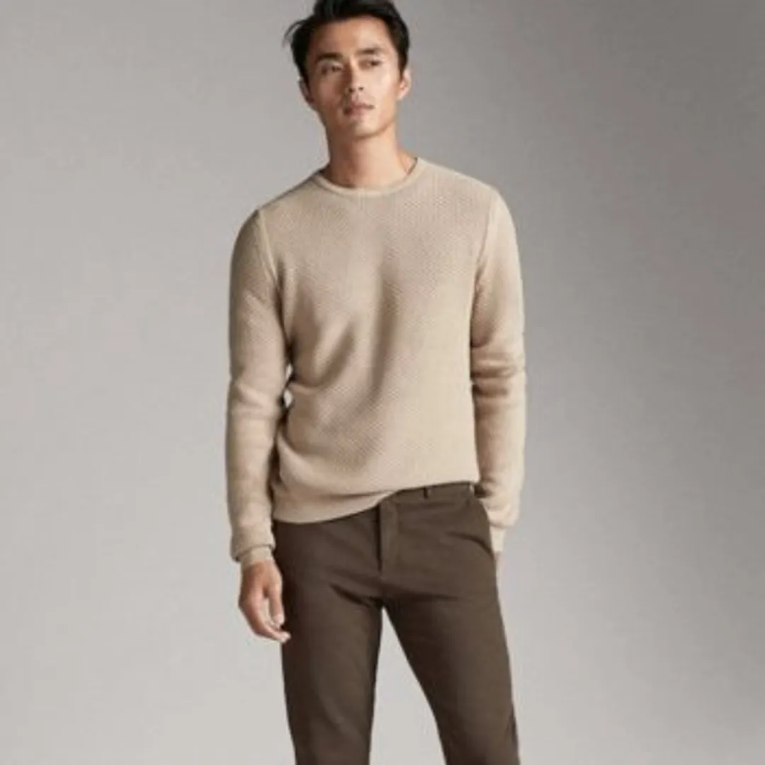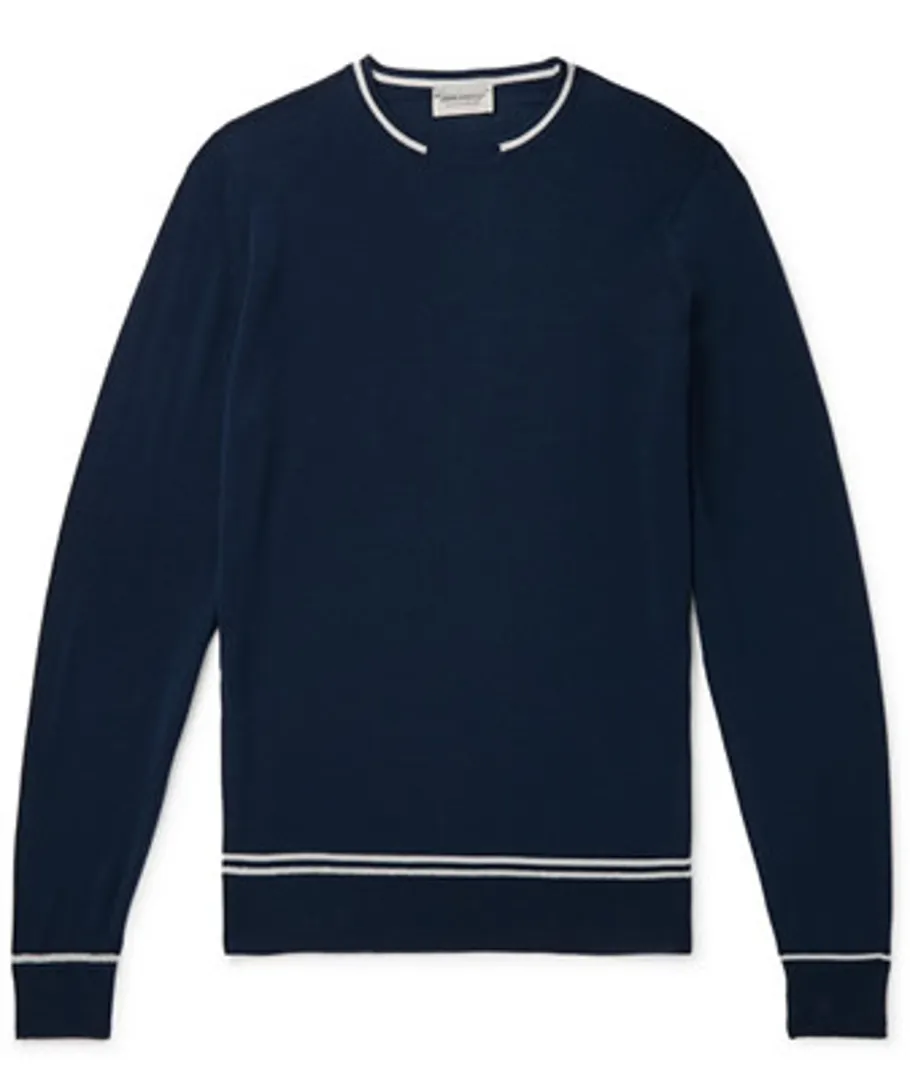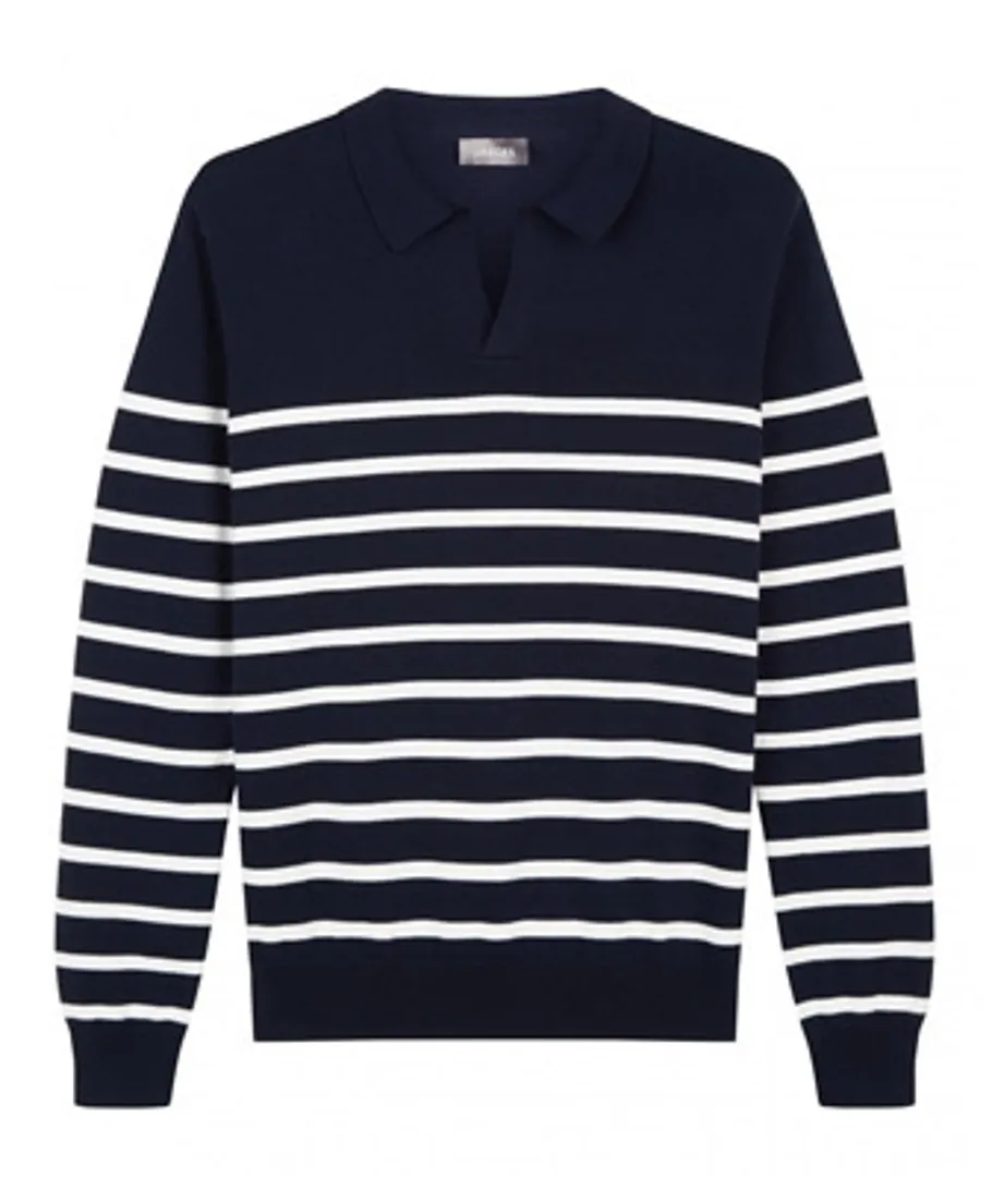 Если вязка хоть немного напоминает вам старую мужскую одежду середины прошлого века, вы на правильном пути. Особенно это касается выкройки и деталей. Попробуйте поло из льняного трикотажа с длинным рукавом и отложным воротом. Освежите рубашку из льняного трикотажа орнаментом бретонской полоски, навивающим море и французскую моду. Вязаная трикотажная одежда может стать ключевой деталью вашего образа, попробуйте современную версию классического джемпера для крикета, который носили Кэри Грант и Ральф Лорен.