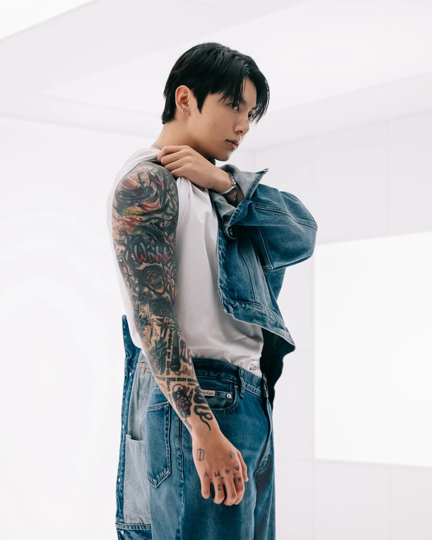 Мне как наблюдателю особенно интересно видеть в этом символ его триумфального возвращения. Он только что завершил обязательную военную службу, и вот он уже снова в центре внимания, в дениме легендарного бренда. Это напоминает о том, как быстро может раскрутиться маховик славы, но и о том, какое давление лежит на этих молодых людях. Впрочем, Чонгук выглядит так, словно он и не уходил.