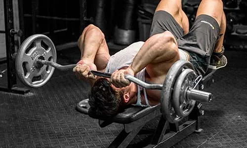 1. Жим штанги на наклонной скамье (45°). 8-10 повторений, 3 подхода.