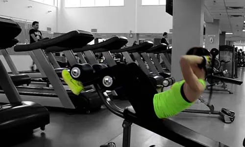 7. Подъемы корпуса на наклонной скамье (скручивания). 20-25 повторений, 3 подхода.