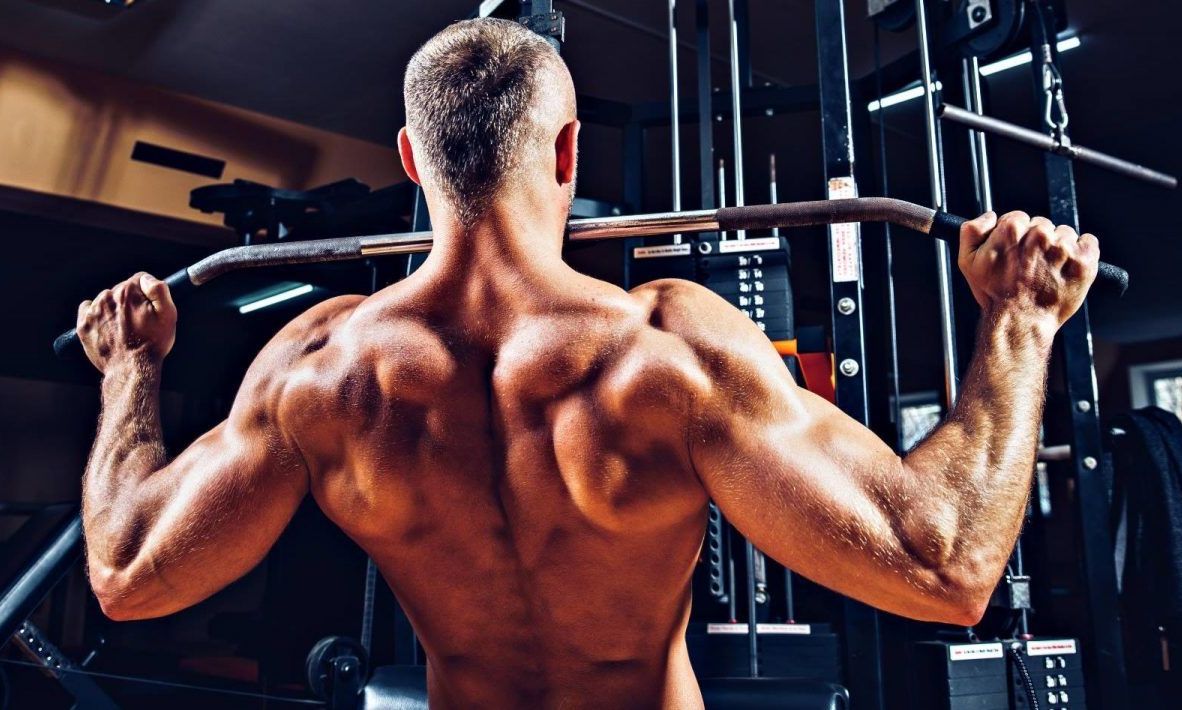 1. Тяга верхнего блока к груди широким хватом. 8-10 повторений, 4 подхода.