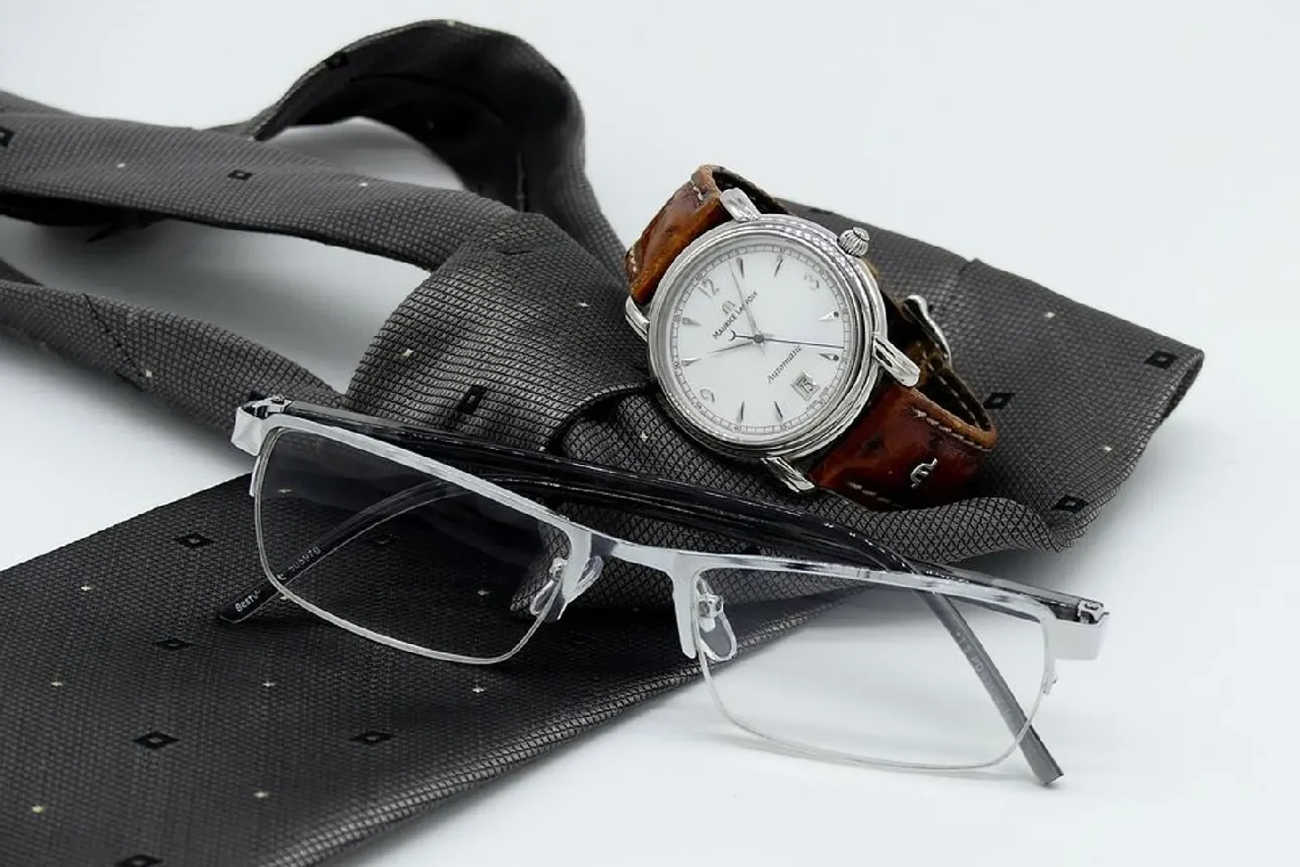 Наиболее престижными часами являются механические, а не кварцевые. При деловом стиле одежды рекомендуется носить тонкие часы, чтобы была возможность их спрятать под рукав одежды. Ремешок часов должен быть сделан из натуральной кожи или металла. Цвет ремешка подбирается так, чтобы он хорошо гармонировал с цветом бумажника.