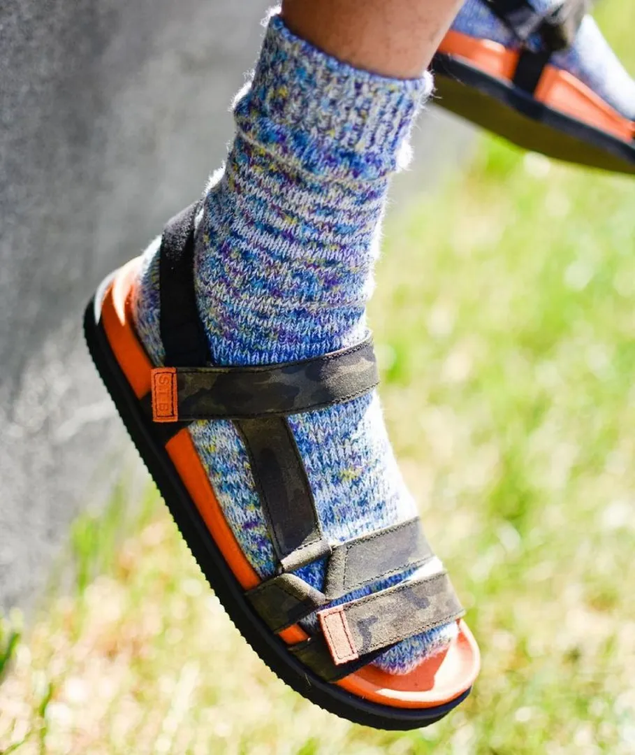 Летняя универсальная обувь. По сути, они представляют собой подошву с верхом из ремешков, фиксирующие сандалии со стопой. Очень удобны для посещения пляжа, так как прибрежная галька не доставляет больших проблем, в то время, пока ноги принимают солнечные ванные.