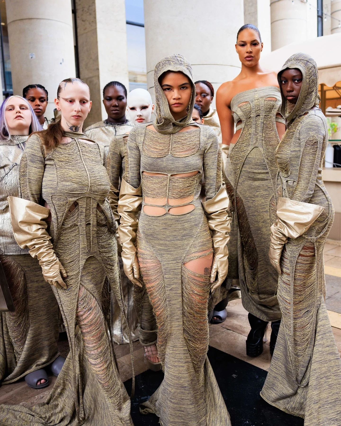 Коллекции Оуэнса славятся смелыми экспериментами и оригинальным видением, постоянно расширяя границы моды. Возьмем, к примеру, MONSTERS SS98. Это была первая коллекция Рика Оуэнса, в которой он продемонстрировал свою фирменную технику драпировки вместе с моделями-трансгендерами, что стало прецедентом инклюзивности в индустрии. Согласитесь, весьма революционно, не так ли?
