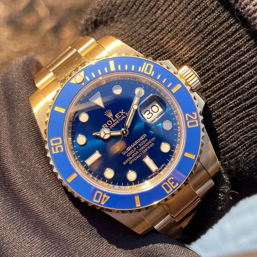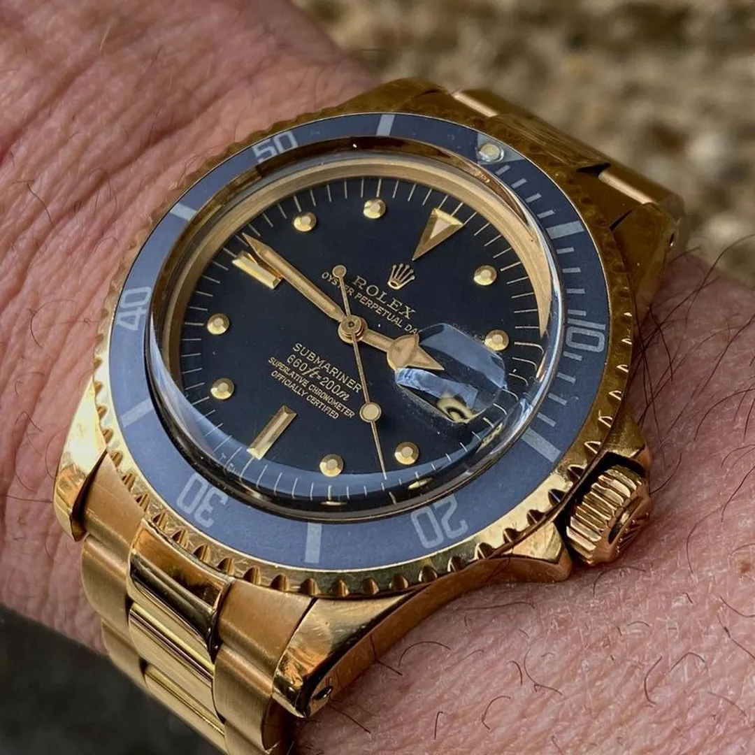 Вскоре после этого Rolex вывел Submariner на новый уровень, выпустив модели 16808 и 16800 с оформлением из золота. Обе модели выполнены из 18-каратного желтого золота и сопровождались черным циферблатом и черным безелем или синим циферблатом и синим безелем.