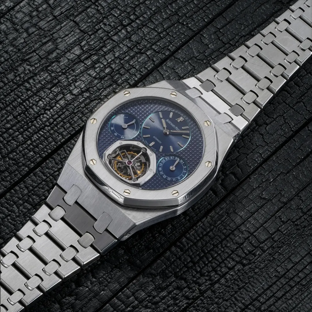 Первый Royal Oak с турбийоном, выпущенный в 1997 году в честь 25-летия модели, ограниченной серией, всего в 25 экземплярах. Часы, выставленные на аукцион, имеют лот номер 1. Оцениваются в 120-240 тысяч швейцарских франков.
