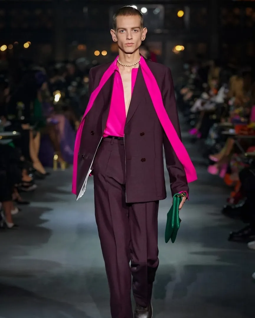 Несмотря на то, что окончательное восхождение розового цвета на пьедестал трендов связано с последним показом Valentino коллекции под названием Pink PP, по-настоящему увлечение розовым началось несколько сезонов назад. В частности, в сезоне весна-лето 2022 он возглавляет список цветов, без которых мы буквально не сможем обойтись, как в пастельных, так и в неоновых вариантах.