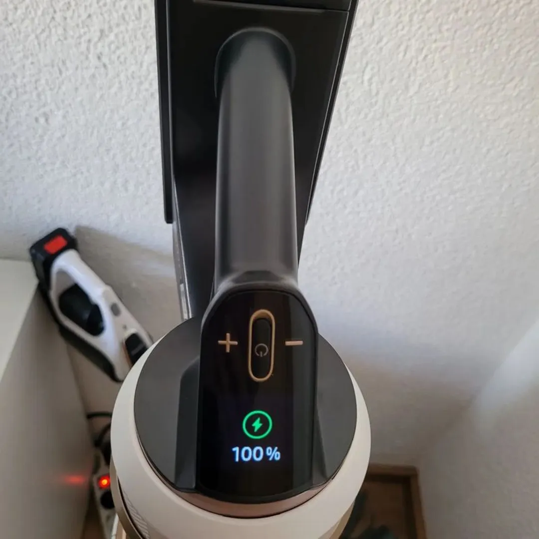 Вся информация, такая как уровень мощности всасывания, оставшийся запас автономной работы и наличие засоренных или отсутствующих фильтров, отображается на цифровом ЖК-дисплее на ручке метлы.