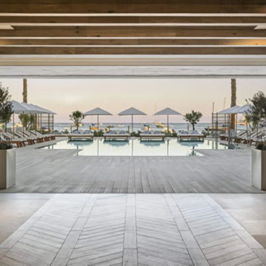 Несмотря на то, что он находится в двух шагах от легендарного ночного клуба Pacha, отель и его часть пляжа кажутся уединенными и безмятежными, с лодками, качающимися в гавани, и открытым видом на море. Четыре ресторана, спа-салон Six Senses и салон John Frieda примут гостей, желающих устроить уик-энд в стиле R & R. Ресторан также используют как модную домашнюю базу для близлежащих спортивных клубов.