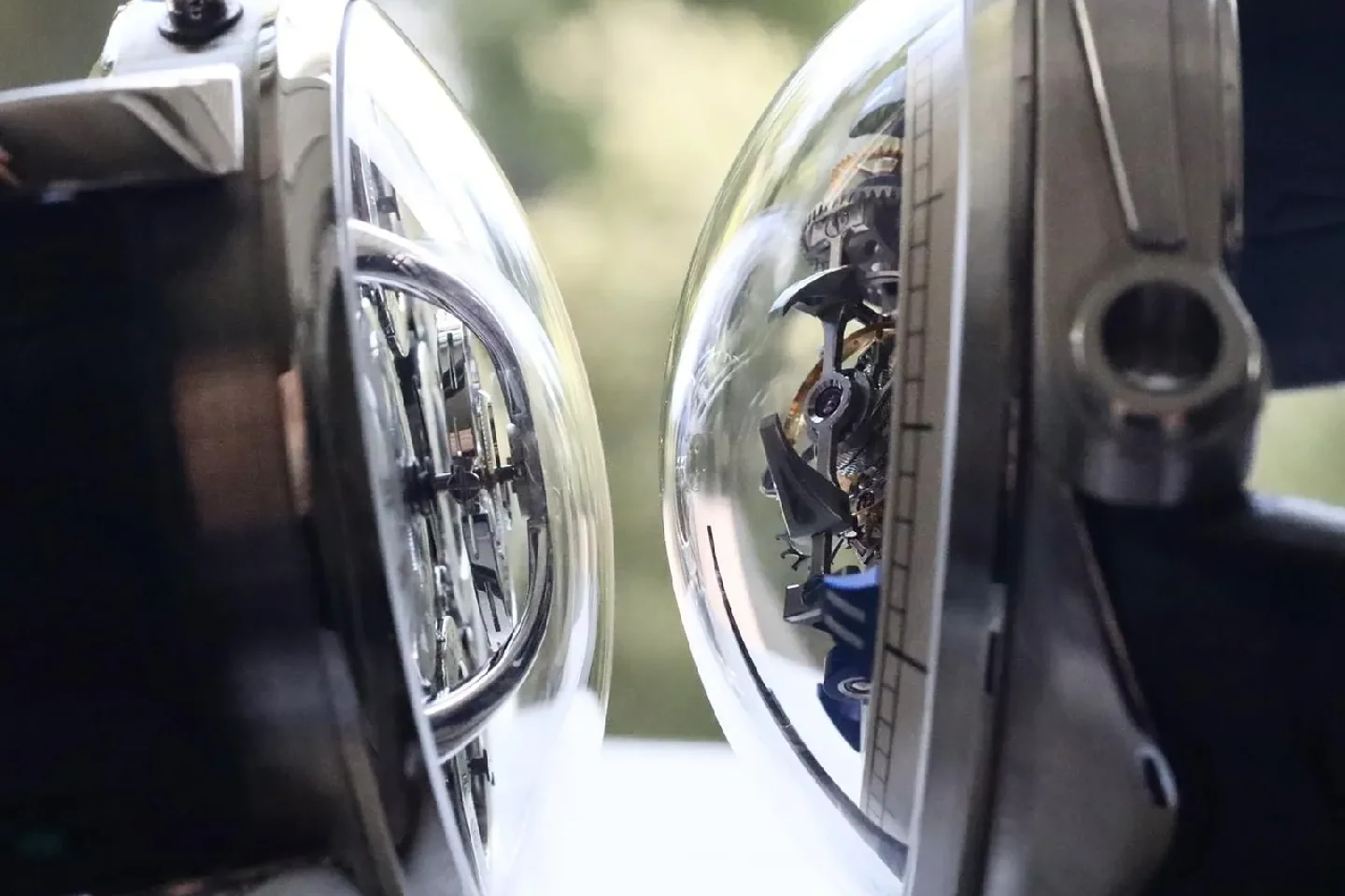 Платиновый корпус диаметром 43,5 мм, с кажется свободно парящим механизмом, подвешенным между двумя сапфировыми стёклами. Часовому бренду потребовалось восемь лет и новый патент на механизм, с подобным оптическим результатом.