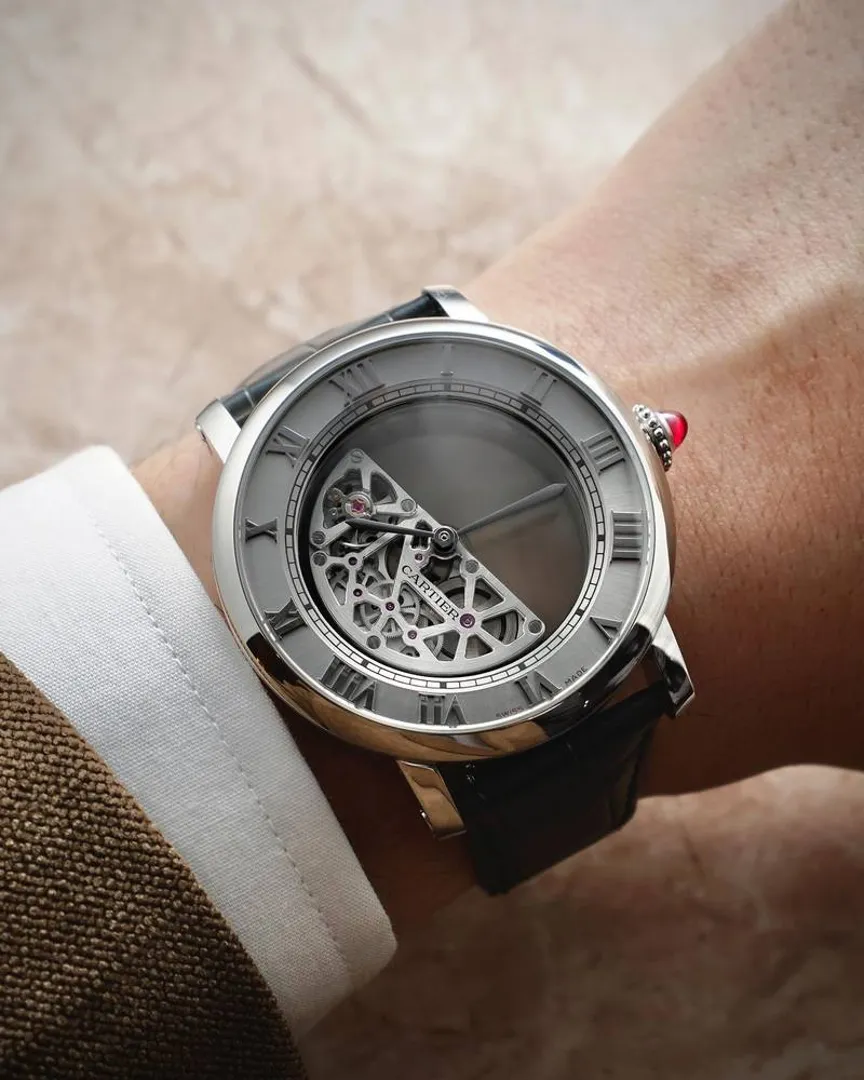 Дизайнеры взяли за основу наследие настольной модели «Pendulettes mysterieuses» и превратили его в колеблющуюся массу, а также в самую технически сложную модель, когда-либо созданную французской компанией Cartier.