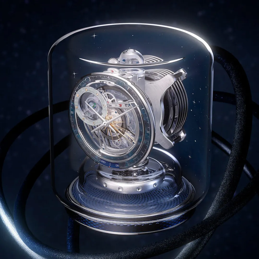 Небо из голубого авантюрина служит фоном для механизма этих часов, оснащённого регулирующим органом (баланс, анкер, спуск) из кремния. Механизм представлял собой карусель, вращающуюся сама по себе каждый час, указывая время, выполняя функцию минутной стрелки и переворачивая авантюриновую пластину, украшающую механизм. Внутри отчётливо виден очень лёгкий и большой кремниевый баланс с никелевыми инерционными блоками, колеблющиеся с частотой 3 Гц.