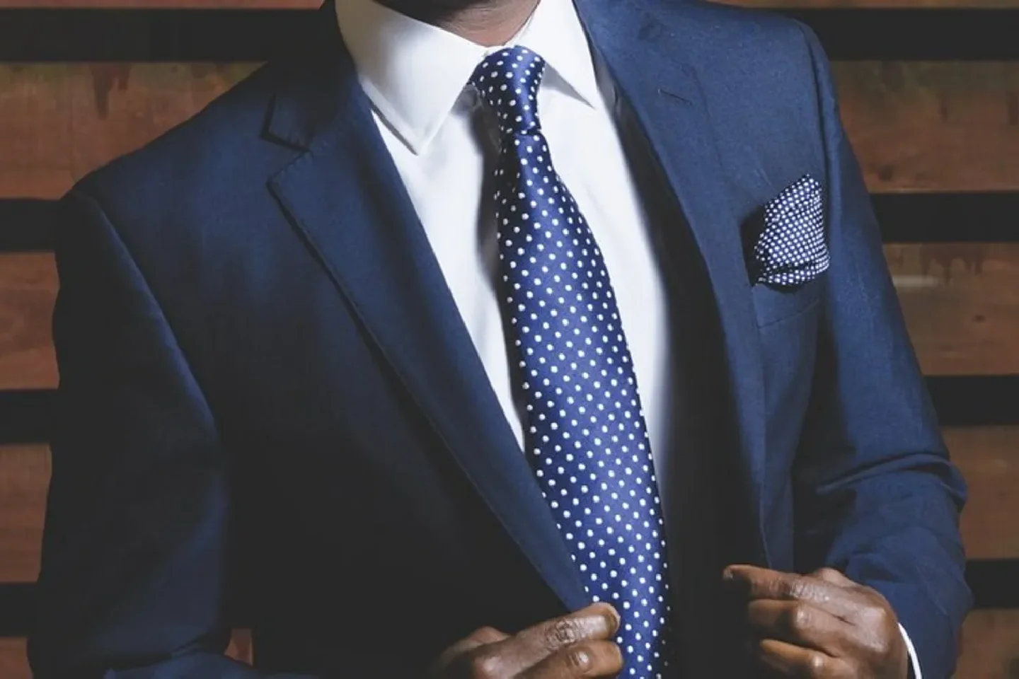 Классический деловой образ. Беззаботный темно-синий костюм, надетый с белоснежной рубашкой и серым галстуком от среднего до светло-белого цвета, создадут беззаботный офисный образ. Здесь важно обратить внимание на детали — узел галстука, расположение карманного платка и как сидит костюм — все это очень важно для финала комбинации.