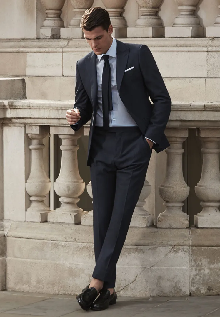 Оденьте голубую классическую рубашку под свой темно-синий костюм, завяжите темно-синий галстук и завершите образ парой черных дерби или лоферов. Поздравляем, теперь вы тот парень.
