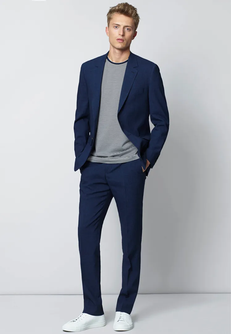 Для опытного минималистичного гардероба синий костюм — это все, что вам нужно. Те два предмета, в которых вы женитесь, могут быть с некоторым налетом смарт дизайна, а также его можно использовать для собеседований, прогулок по городу и свиданий в стиле смарт кэжуал.