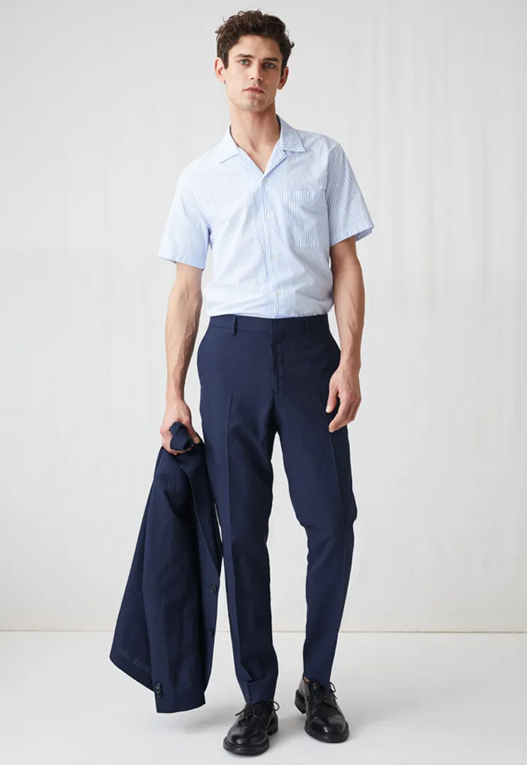 Дико популярная в последнее летнее время рубашка с кубинскими воротниками придаст вашему костюму позитивное настроение (даже если вы работаете в страховой компании). На рубашках этого типа часто встречаются смелые узоры, но мы рекомендуем сохранять цветовую палитру как можно более нейтральной, особенно если вы планируете надеть ее на работу.